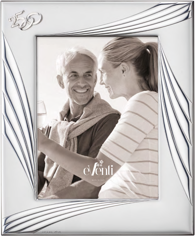 Descrição: Moldura bilaminada a prata com motivo comemorativo “25 anos”.