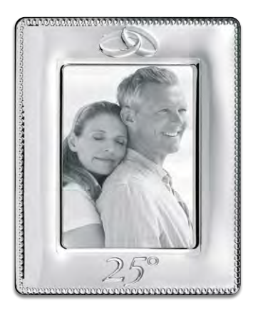 Descrição: Moldura bilaminada a prata com motivo comemorativo “25 anos”.