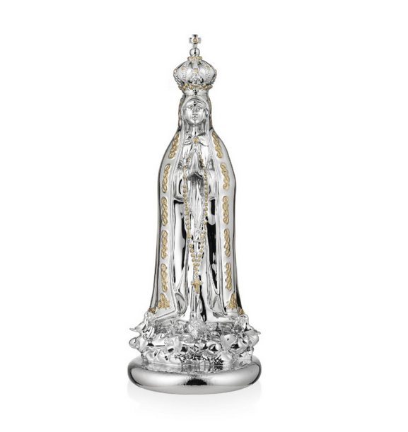 Descrição: Bibelot bilaminado a prata, N.Sra Fátima.