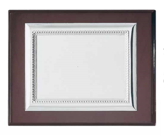 AdicionarDescrição: Placa bilaminada a prata, para gravação de dedicatória. Referência: BI15044 Composição: Bilaminado a prata (Chapeado/revestido a prata sobre metal comum), suporte em madeira. Tamanho da placa (cm): 13×16 Preço (inclui IVA a 23%): 75,00€ Acompanhado de Certificado de Qualidade do Fabricante.
